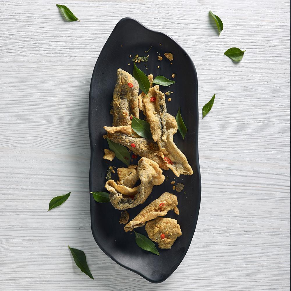 Fish Skin, Salted Egg Yolk, Margarine, Coconut Powder, Sugar, Monosodium Glutamate, Curry Leaves, Chilli.
